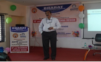 The Department of Electronics & Communication Engineering (ECE), Bharat Institute of Engineering and Technology (BIET) organized Two Week Faculty Development Program (FDP) on RF and Microwave Antenna Design sponsored by All India Council for Technical Education (AICTE). The FDP was held from 27.11.2017 to 9.12.2017. The FDP was inaugurated by the Chief Guest Dr.V.M.Pandharipande, Former Vice-Chancellor (VC), Dr.Babasaheb Ambedkar University and Director, Centre for Excellence in Microwave Engineering, Osmania University and Sri Ch. Venugopal Reddy, Chairman, Bharat Institutions along with other dignitaries.