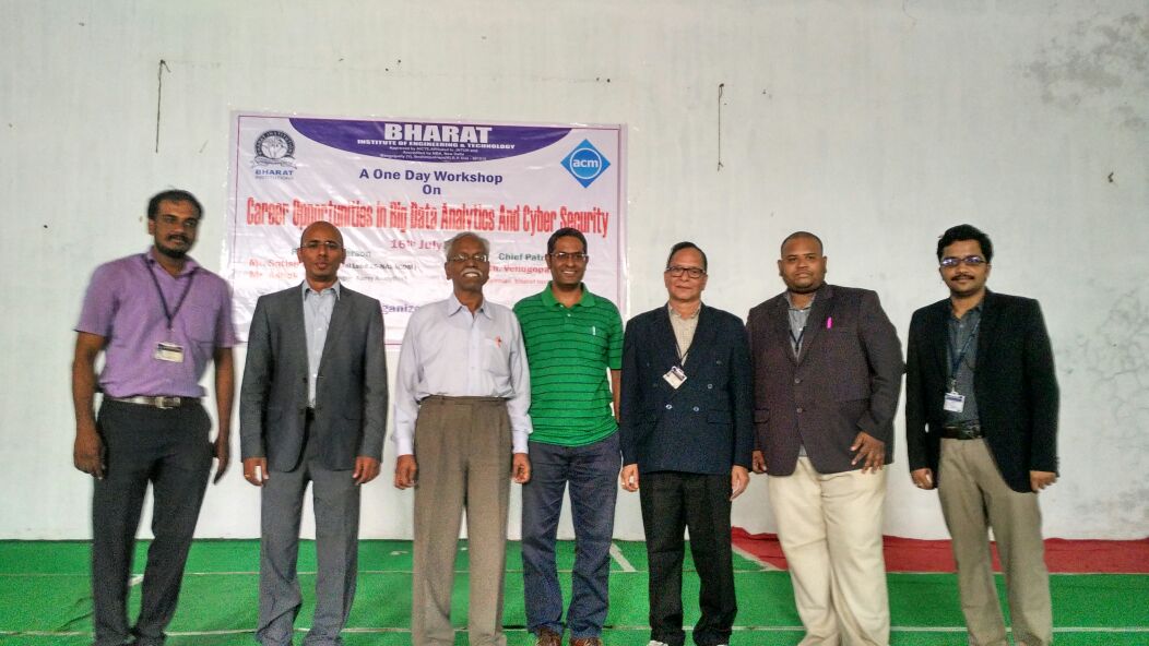 One Day Workshop on \"Career Opportunities in Big Data Analytics and Cyber Security\" on 16 July 2016. Organized by CSE/IT Department under ACM Student chapter. Mr. Satish D V, Regional Lead, TS-NASSCOM and Mr. P. Ashok, Manager, Karvy Analytics are the resource persons.