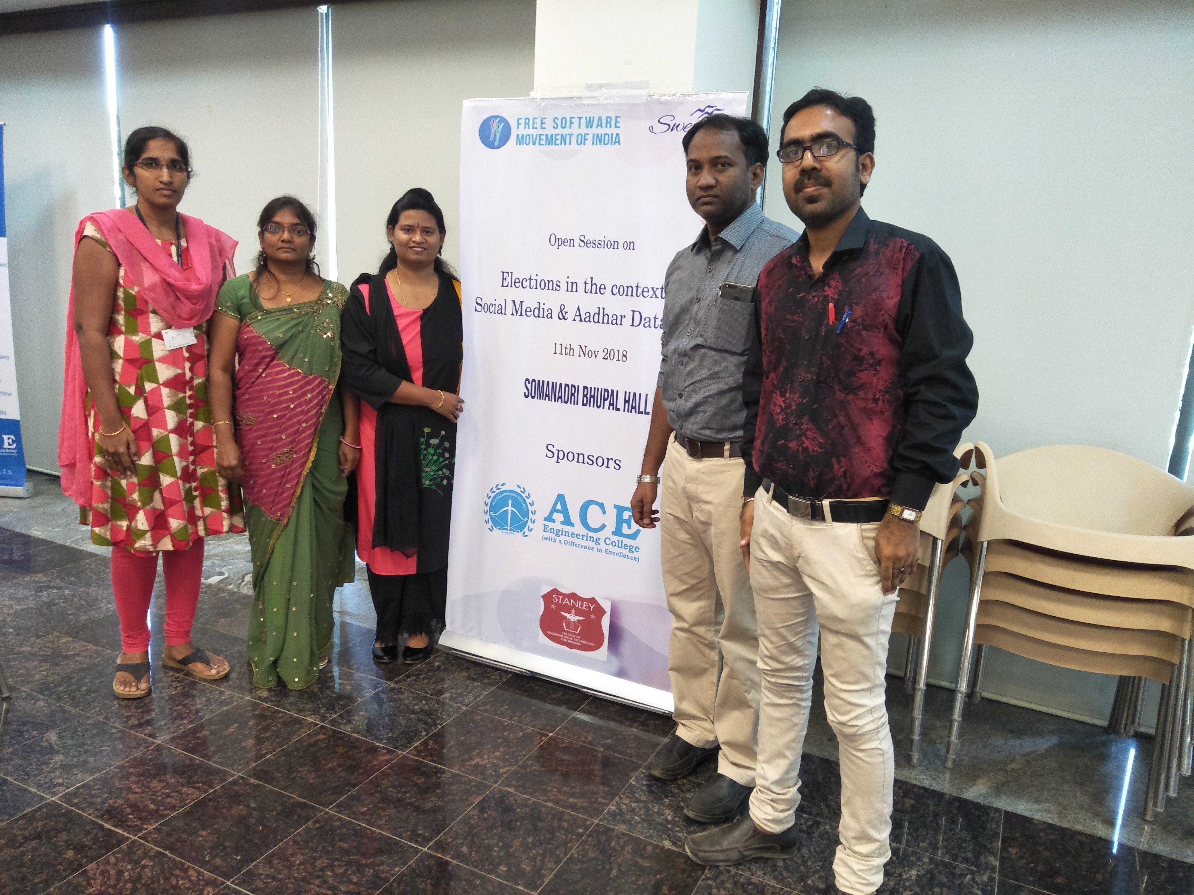 Open Session Conference on Election in the Context of Social Media & AAdhar Data Leaks was conducted on 11th Nov. 2018 at Somanadri Bhupali Hall ,Gaochibowli Hyderabad by Swecha Organisation.