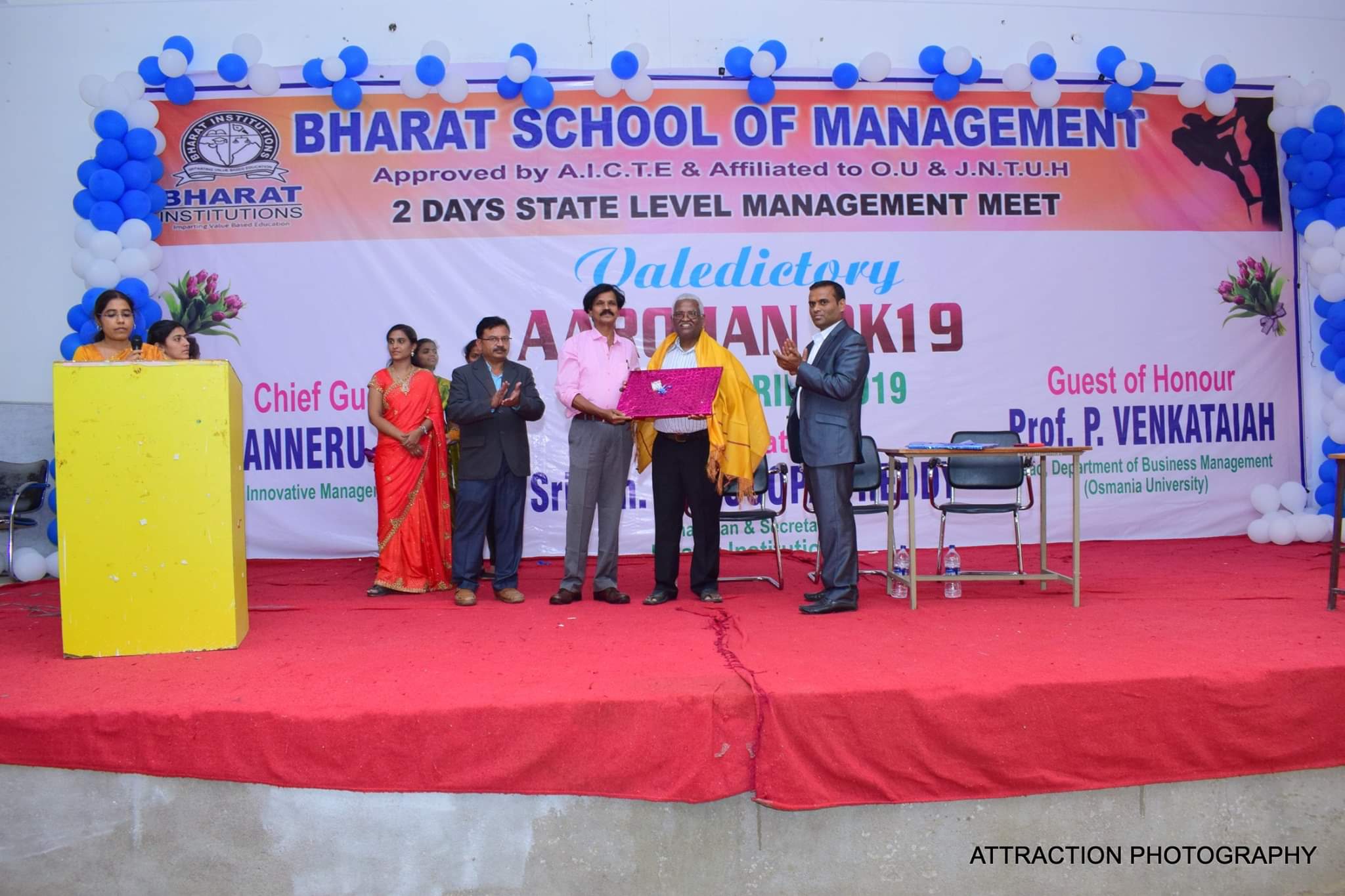Freshers’ Day of Bharat Institutions was celebrated on 28 January, 2017 for 2016 admitted MBA students with pomp and gaiety in the august presence of Shri. CH. Venugopal Reddy, Hon’ble Chairman ; Dr.B. Prasada Rao garu, Director of Training & Placements, Dr. G.Kumara Swamy Director (R&D), Dr. Ganesh Babu (Dean Academics), Dr. J.R.V.Jeny (Dean Admin).