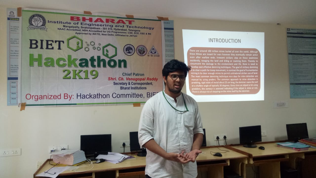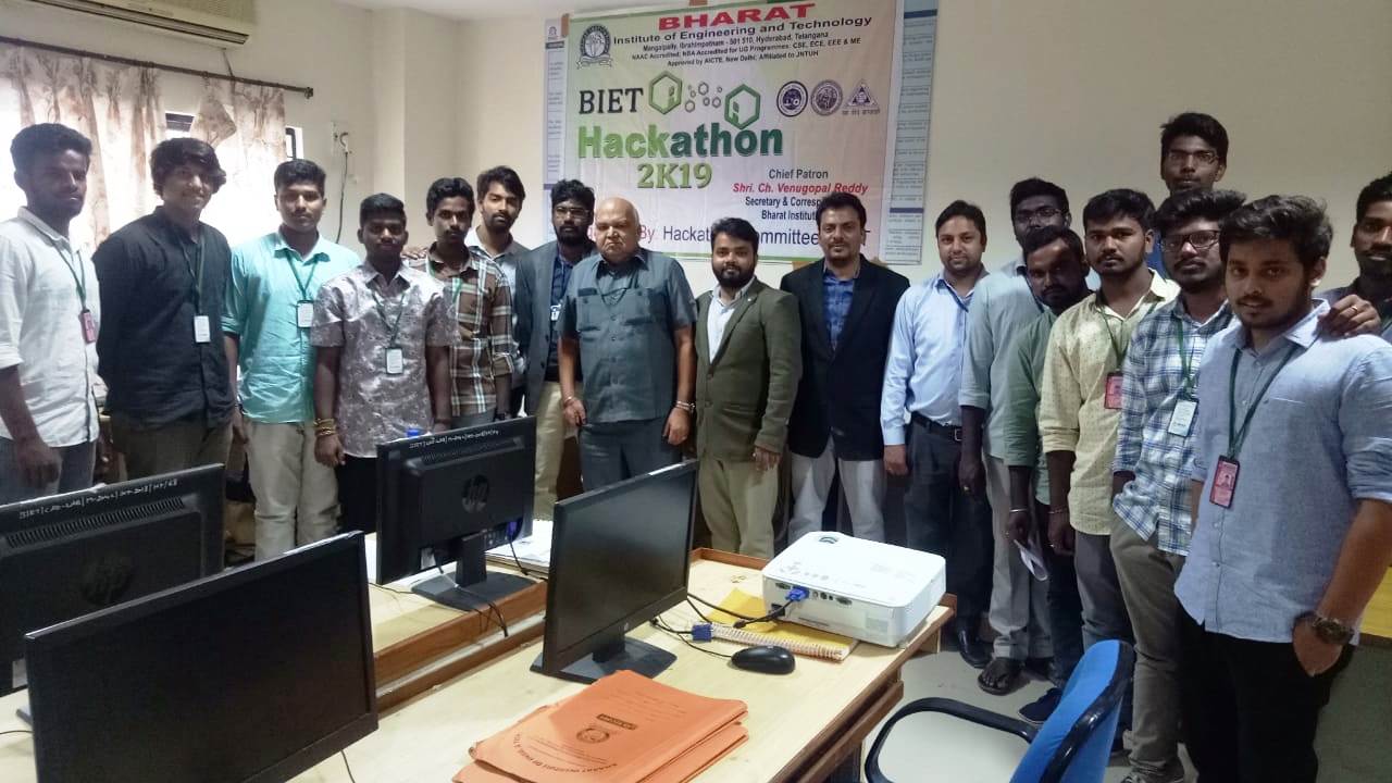 The BIET Hackathon was organised for II/III/IV year students on 9th Nov, 2019 by ECE/CSE/EEE/ME & CE Dept., and 150 teams participated from all departments. Theme of the competition was Robotics & Drone, Waste Management, Security & Surveilance,Smart Communication, Health care,Agriculture & Rural Developement, Smart vehicles etc.