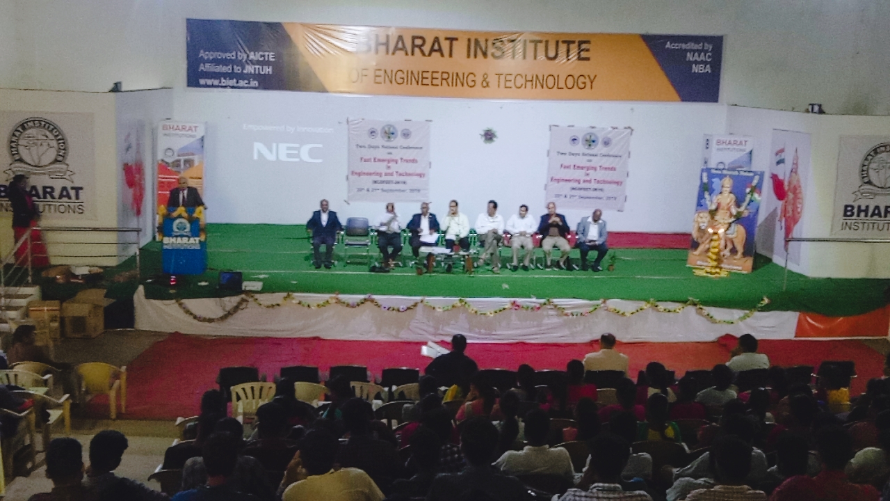 Bharat Institute of Engineering and Technology, Mangalpally, RR dist, Telangana had organized two day National Conference on Fast Emerging Trends in Engineering And Technology(NCOFEET2K19) from 20th and 21st September 2019.    More info