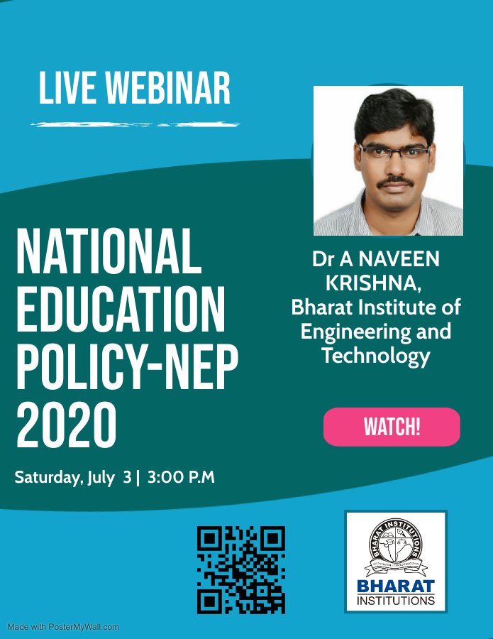 The Department of Mechanical Engineering, Bharat Institute of Engineering and Technology is organized one week National Level Online webinar Series on “ Emerging Trends In Mechanical Engineering ( ETME2020)’’ during 16th to 20th June 2020