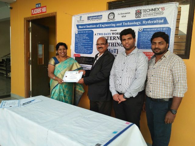 Two days workshop on IOT-Internet Of Things was conducted at BIET campus on 21st DEC and 22nd Dec 2017 by TECHNEX-18 ,IIT Varanasi.88 students participated in the workshop from different branches including CSE,ECE,EEE.