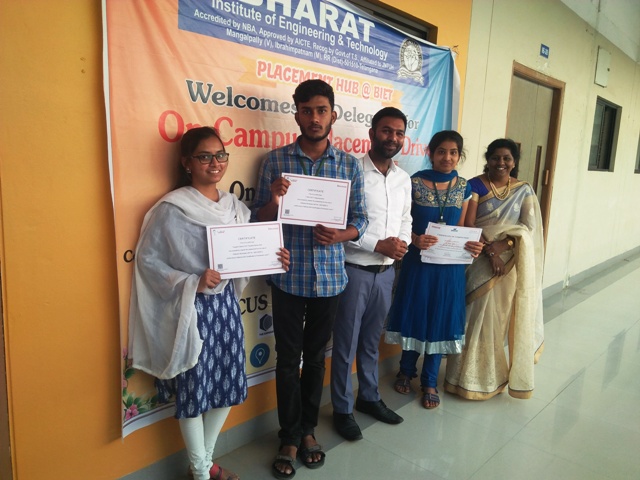 BIET placement hub conducted JOB MELA placement drive on 06-01-2018 for final year students of all branches and recruited 126 students in total and distributed offer letters