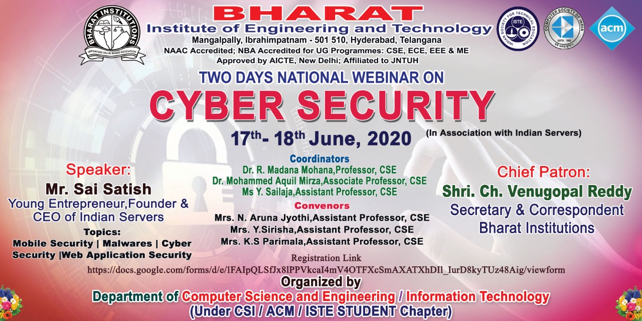 Department of Computer Science & Engineering and IT organized 2 days National level webinar on "Cyber Security" from 17-06-2020 to 18-06-2020