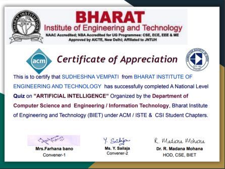 Department of CSE organised a National Level Quiz on "Artificial Intelligence" in June 2020 under ACM&CSI chapters.