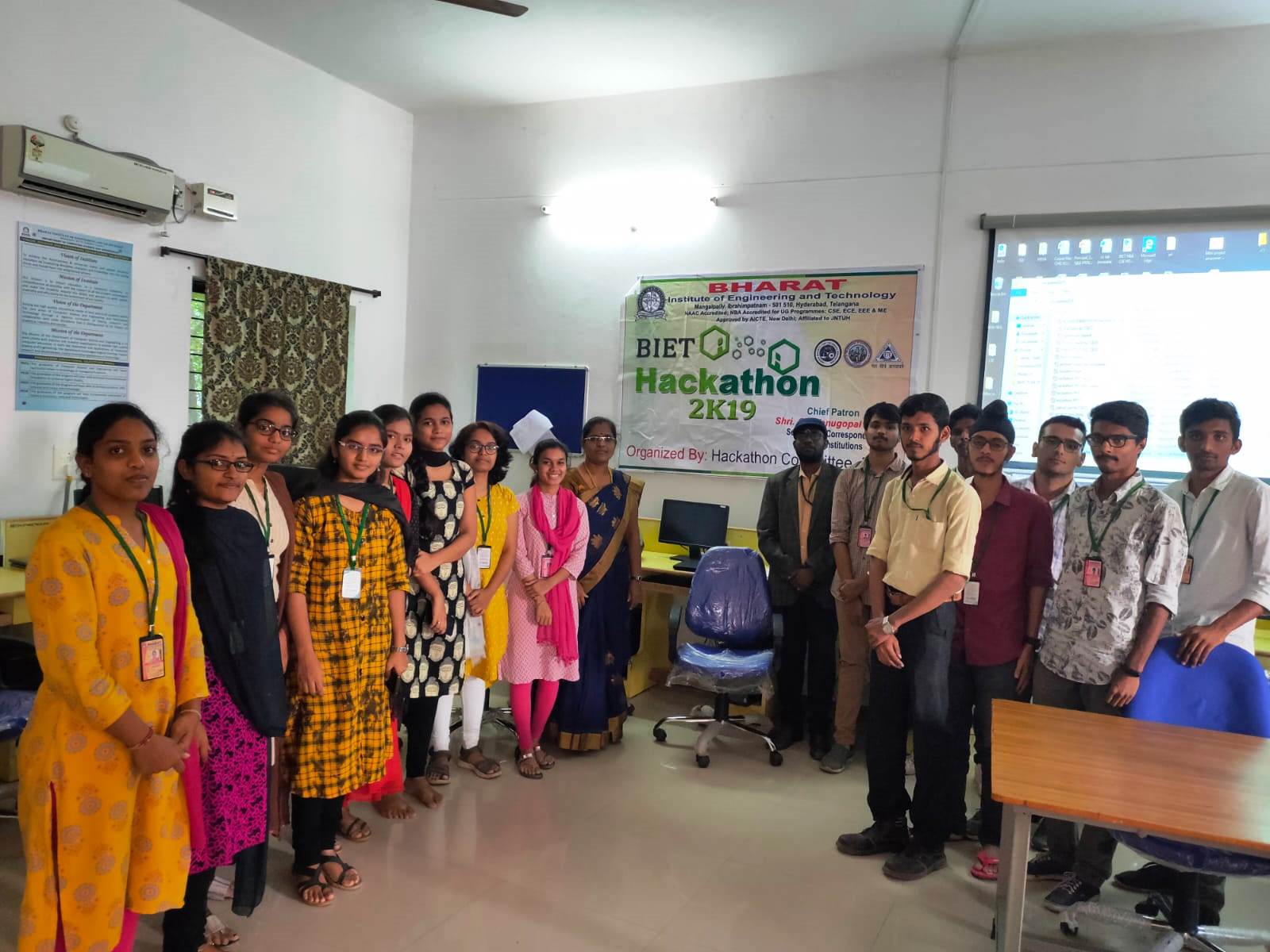 The BIET Hackathon was organised for II/III/IV year students on 9th Nov, 2019 by ECE/CSE/EEE/ME & CE Dept., and 150 teams participated from all departments. Theme of the competition was Robotics & Drone, Waste Management, Security & Surveilance,Smart Communication, Health care,Agriculture & Rural Developement, Smart vehicles etc.