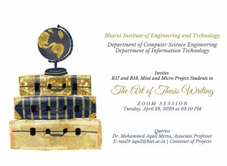 The Department of Computer Science and Engineering organized a Workshop on "Thesis Writing" by Dr. Mohammed Aquil Mirza, Associate Professor of CSE Dept on 28-Apr-2020