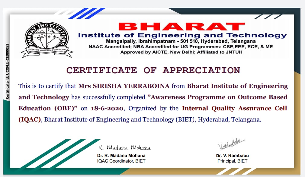Department of CSE & IQAC are organised a E-Quiz on "Awareness Programme on Outcome Based Education (OBE)" on 18/06/2020