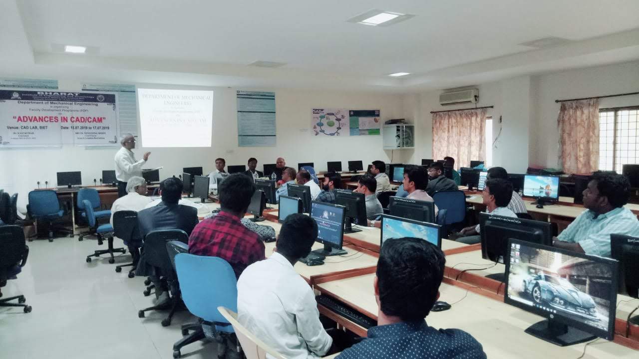 Faculty development program (FDP) on “Advances on CAD/CAM” was conducted from 15th July,2019 to 18th July,2019 by the Department of Mechanical engineering.