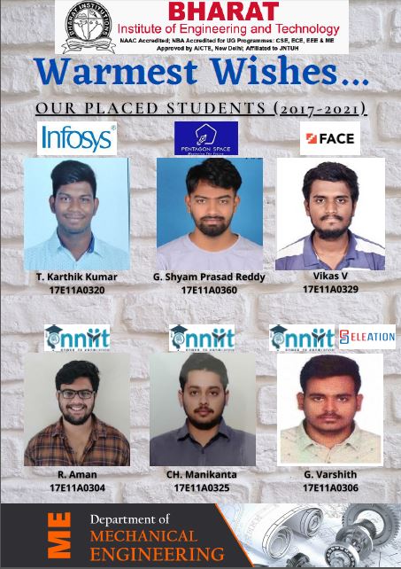 The department of Mechanical Engineering was established in the year 2003 with an initial intake of 60 students and further a section with 60 students is added in the year 2009. The current intake is 120. The department is also offering M.Tech program in CAD/CAM with an intake of 18 students since 2013.